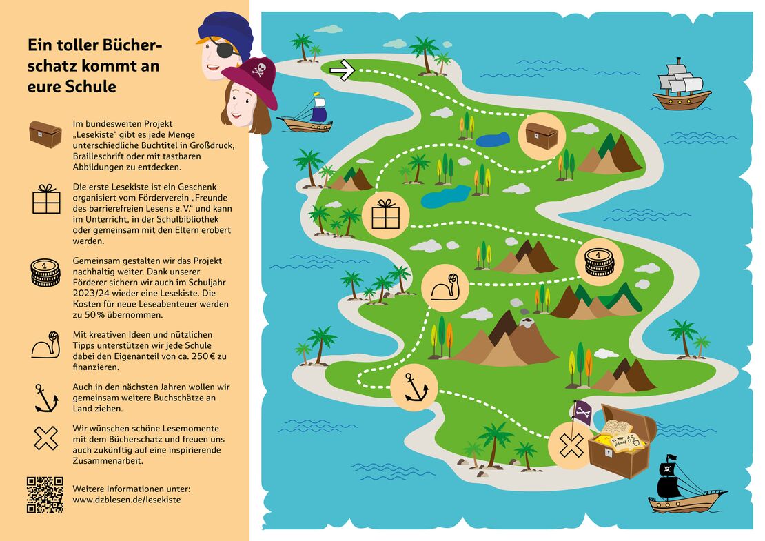Der Förderverein "Freunde des barrierefreien Lesens e.V." und das dzb lesen begannen im Dezember 2022 bundesweit mit dem Versand von Lesekisten an Schulen und Förderzentren. Im 1. Quartal 2023 erhielten rund 50 Schulen je eine Lesekiste für Grund- und Mittelschule.